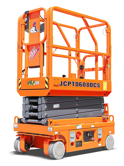 The series of dingli mini scissor lift is mainly composed of JCPT0607DCS and JCPT0708DCS. On this basis, in order to meet the actual needs of customers, covering the full height, the mini scissor lift add a new member -- JCPT0608DCS.