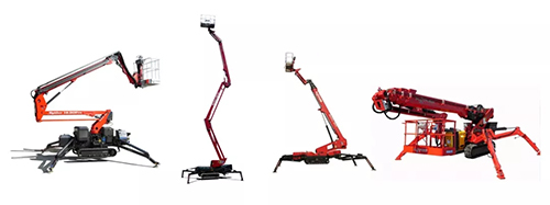 The maximum working height of the spider aerial work platform is 11.4 meters to 43.2 meters, and the power source can be selected as AC motor, battery (Lithium battery), gasoline or diesel engine, etc., which can adapt to more complex scenes for work.