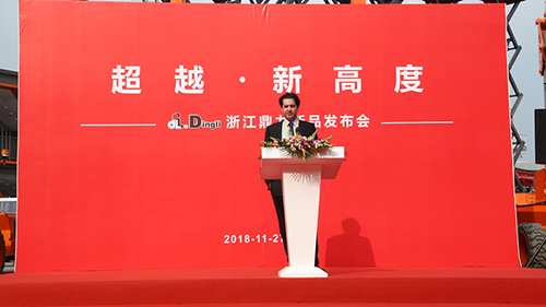What are the features of the 6 new products? What changes will it bring to the industry in the future? Chen Jinchen, deputy general manager of Zhejiang Dingli, first delivered a speech: "In the last bauma exhibition, we first launched 8 new boom-type products designed by Italy, which received strong response in the industry and were well received by customers. In order to bring better-quality products to our customers, we have been constantly studying the details, working hard and striving for excellence ovwe the past 2 years. The 6 new upgraded boom-type products in front of you are the results of our hard work over the past two years..."